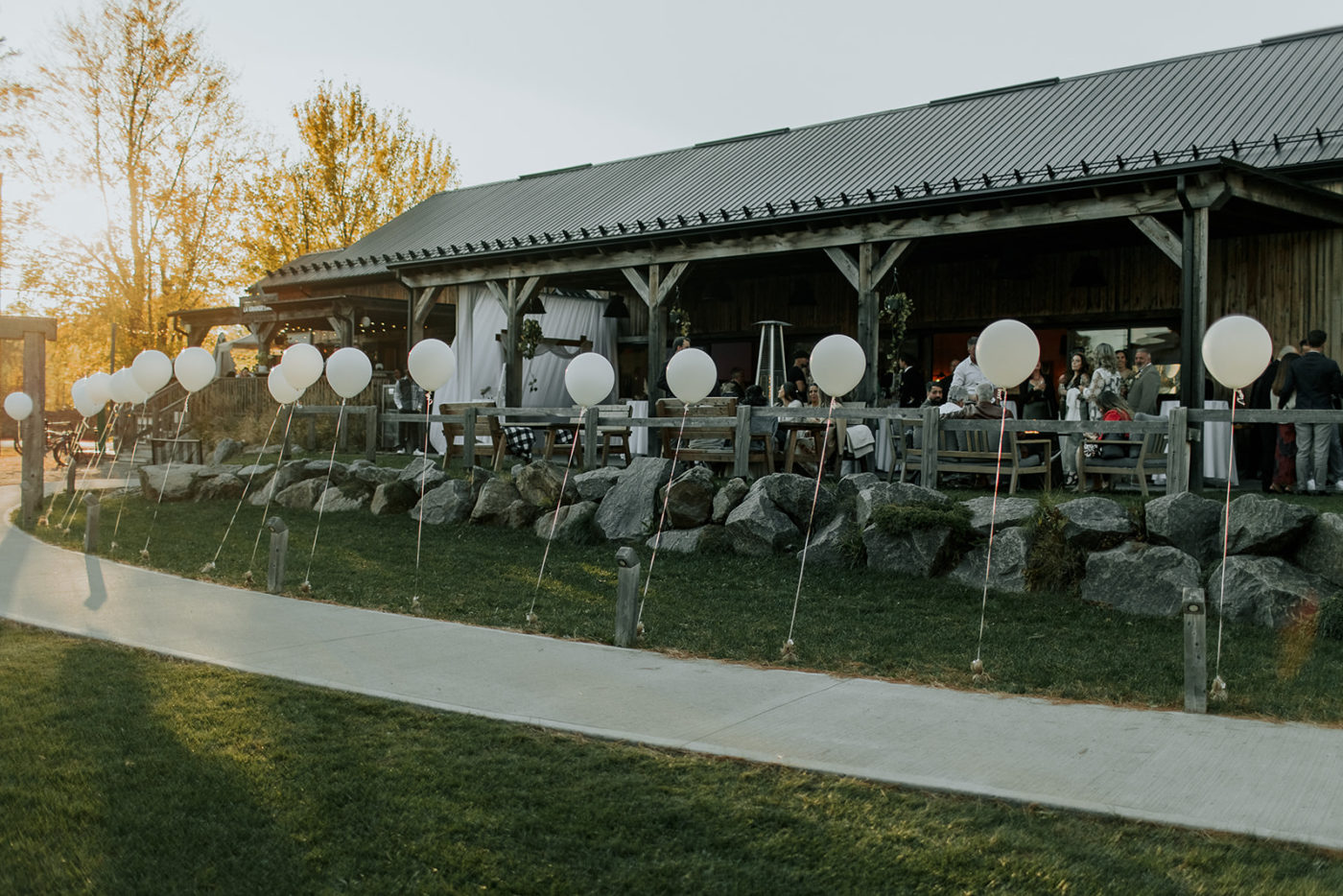 Pour votre mariage, 120 chaises (uniquement pour usage dans la salle), 12 tables rondes et 12 tables rectangulaires sont disponibles, avec des nappes incluses (noires ou rayées noir et blanc). La salle comprend deux salles de bains, un vestiaire et une salle traiteur. La terrasse couverte adjacente, 20 par 60 pieds, propose un foyer au gaz et 2 chauffes-terrasses.