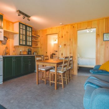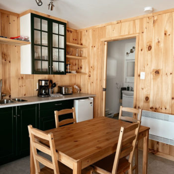 Nos chalets sont entièrement équipés, vous n’avez qu’à apporter vos effets personnels. Veuillez noter que le savon pour le corps et le shampoing ne sont pas fournis.
