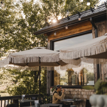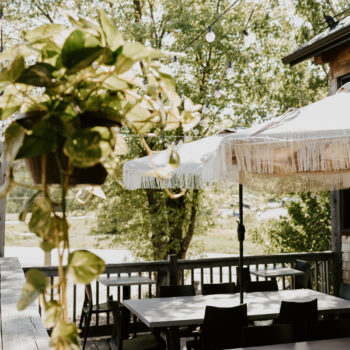 Vous pouvez bien apercevoir la rivière depuis notre terrasse. Cependant, si vous souhaitez être plus près de l’eau, vous pouvez passer une commande à emporter et manger sur notre belvédère, à condition qu’aucun événement privé ne soit prévu sur le terrain. Nous vous demandons néanmoins de bien vouloir rapporter votre vaisselle après votre repas.